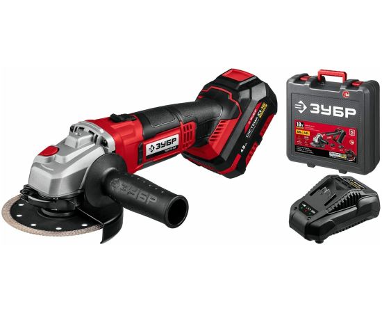 УШМ ЗУБР УШМ-18-125-41, 1 АКБ (4Ач), в кейсе