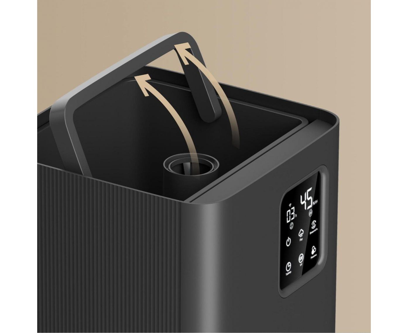 Управление голосом через приложение. Интеллектуальная панель управления. Встроенный отсек для ароматизатора. Керамический фильтрующий элемент.