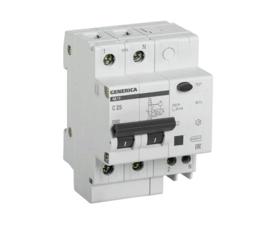 Технические характеристики GENERICA АД12 2Р 25А 30мА MAD15-2-025-C-030