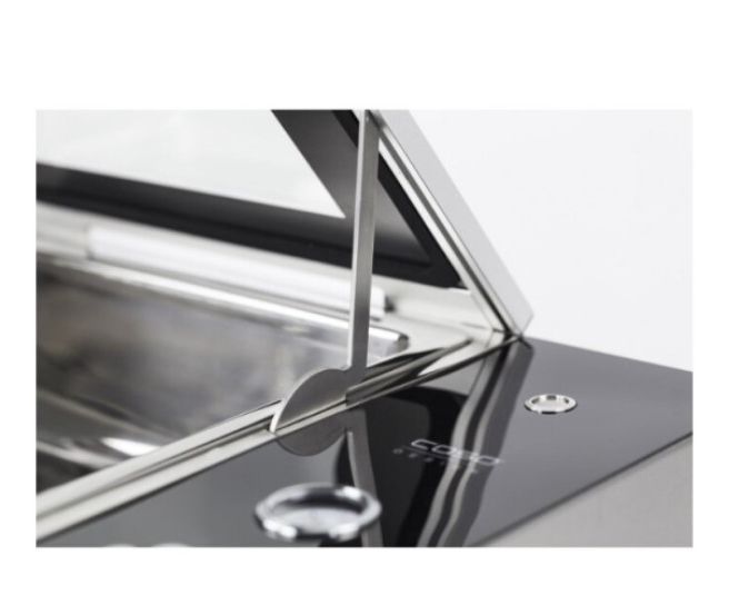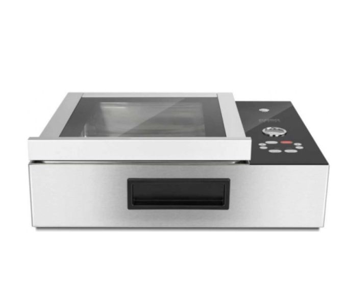 VacuChef Slimline - премиальное устройство компании Caso, который сочетает в себе компактный размер и плоскую форму, экономя место на вашей кухне, и характеристики лучших моделей линейки VacuChef . Корпус и внутренняя камера прибора изготовлены из прочной нержавеющей стали, верхняя крышка сделана из закаленного стекла для того, что вы могли следить за процессом вакуумирования, объем внутренней камеры около 8 л.
