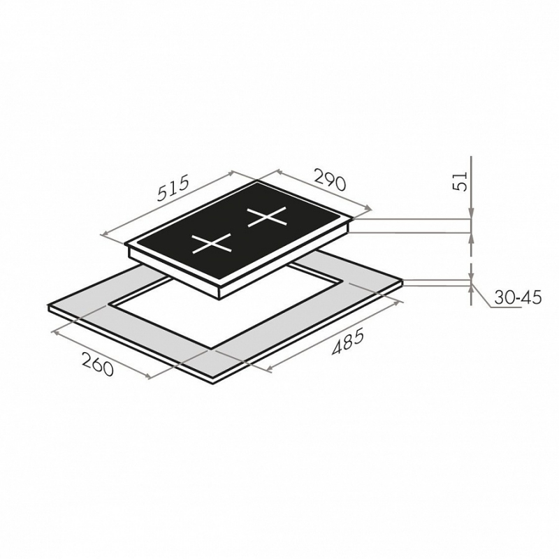 Размеры для встраивания (ШхГ): 260х485 мм