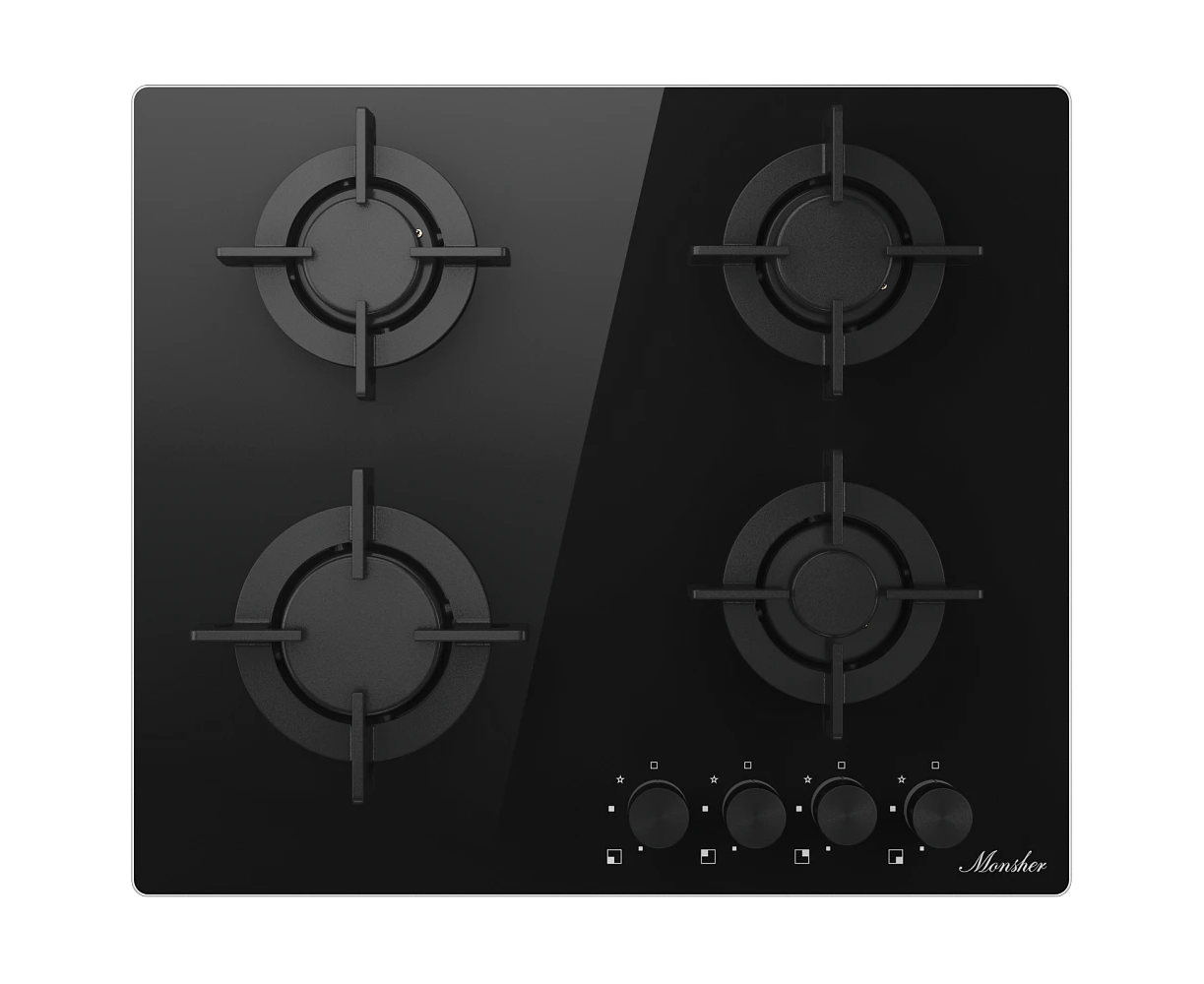 Варочная поверхность MONSHER MGG 64 Noir High-Tech, газ, 59см, газ-контроль, автоматический электроподжиг, чугунные решетки