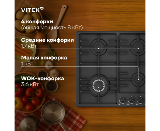 Варочная поверхность Vitek VGH 6410W MBK черный матовый