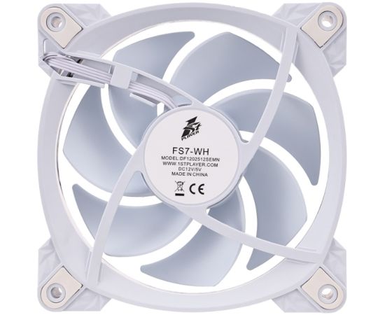 Вентилятор 1STPLAYER FS7 White (FS7-WH) / 120mm ARGB 3pin 5V PWM 4pin 12V 600-800rpm 47.65cfm 32.2dBA / Bulk
