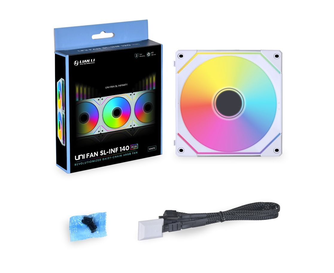 Вентилятор Lian Li Uni Fan SL-INF 140 White /UF-SLIN140-1W/ G99.14SLIN1W.R0/ 140x140x25мм (PWM, ARGB, 200-1600 об/мин, 28dBa)