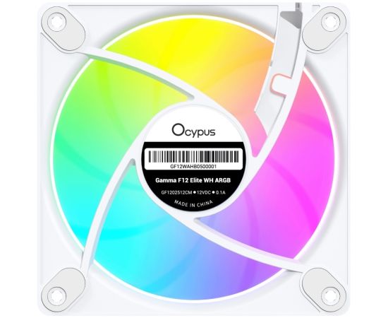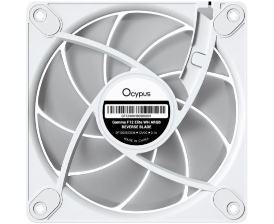 Вентилятор Ocypus Gamma F12 Elite WH ARGB Reverse Blade 3 IN 1, 120x120x25mm, 4-Pin PWM, 600-1800 RPM, 26 DBA Max, Hydro Bearing