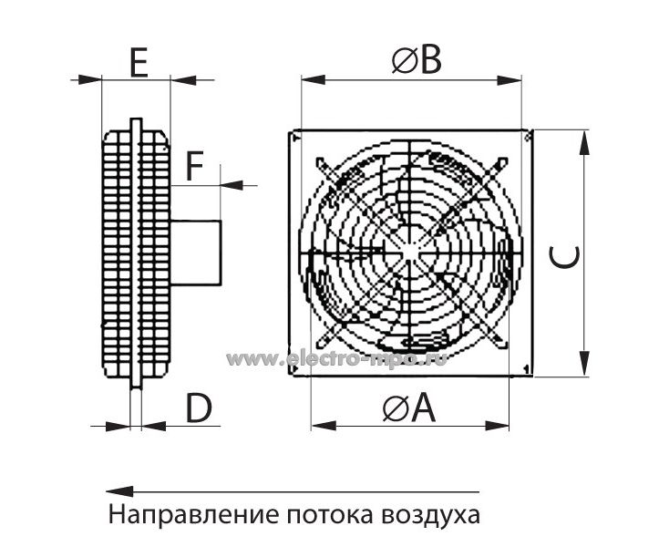-Габаритные размеры (мм): РА-250; В-313; С-8; D-70, E-60.