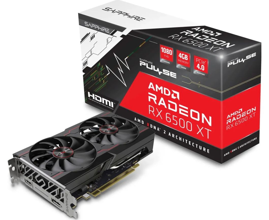 Видеокарта Sapphire AMD Radeon RX 6500XT 4Gb (RX 6500XT Gaming OC Pulse) (11314-07-20G) PCI-E 4.0 64bit GDDR6 2685/18000 HDMIx1 DPx1 HDCP Ret