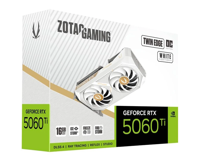 Видеокарта Zotac Nvidia GeForce RTX 5060TI Twin Edge OC White ED 16ГБ (ZT-B50620Q-10M) GDDR7, Ret
