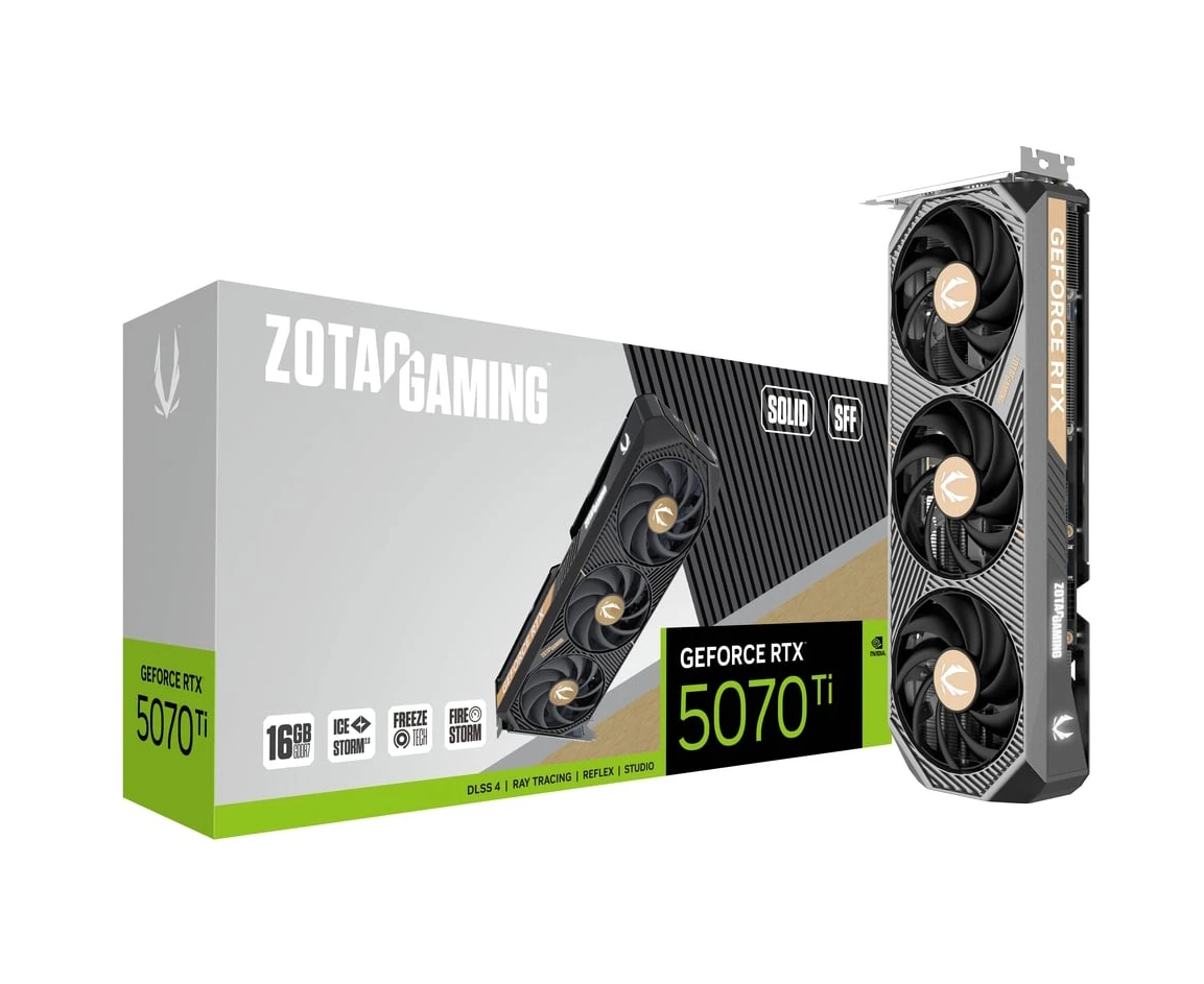Видеокарта Zotac RTX 5070 Ti Solid SFF 16Gb (ZT-B50710D3-10P) 256bit GDDR7 2452/28000/HDMIx1/DP PCI-E 5.0