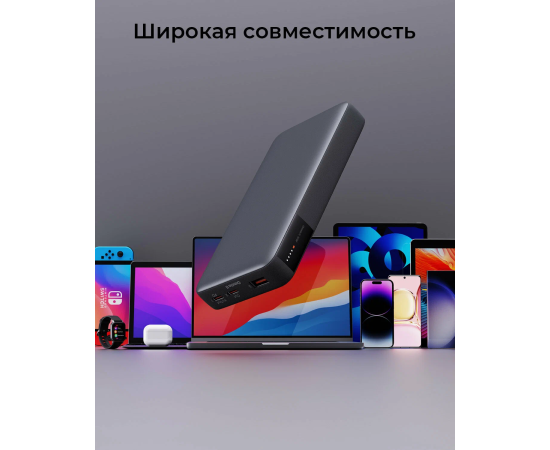 Внешний аккумулятор, кабель USB-C, руководство пользователя