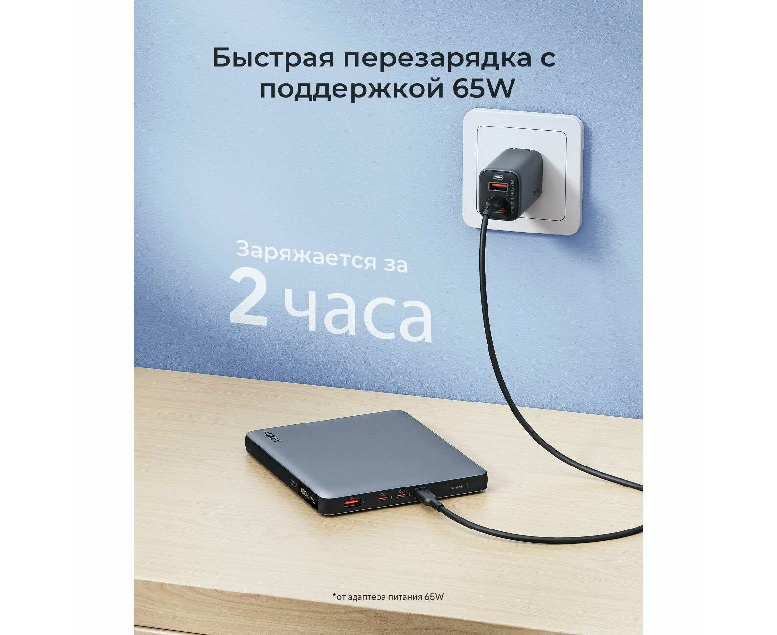 Мощность - 100 Вт; Разъемов USB Type-C - 2 шт.; Сквозная зарядка