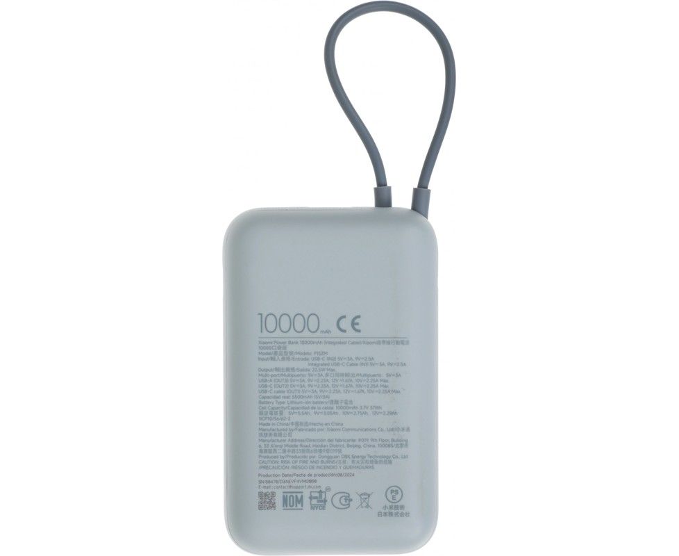 Внешний аккумулятор Xiaomi BHR9073GL 10000mAh встроенный кабель GL P15ZM Ледяной синий