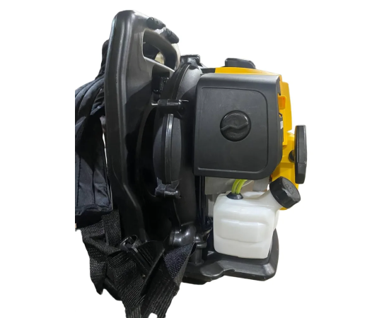 Профессиональная антивибрационная система, двигатель с мощностью 2150 Вт, есть транспортировочная ручка, ранцевая система