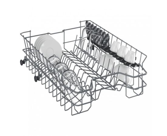 Устройство Beko BDIS 25961 вмещает до девяти комплектов посуды. При необходимости включение можно перенести на 9 ч, для чего предусмотрен таймер отложенного старта. Информация о работе модели отображается на встроенном дисплее. За цикл мойки расходуется не более 10,5 л воды. Для столовых приборов имеется отдельная корзина. Благодаря специальной форме корпуса устройство предназначено для встраивания под кухонную столешницу.