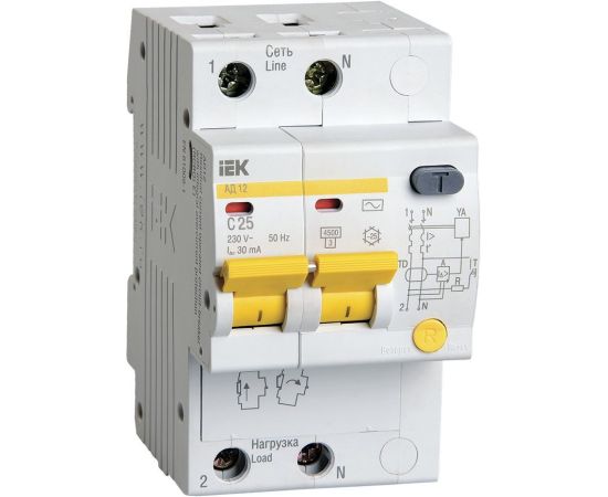 Выключатель автом. дифф. тока IEK АД12 MAD10-2-025-C-030 25A тип C 4.5kA 30мА AC 2П 230В 3мод белый
