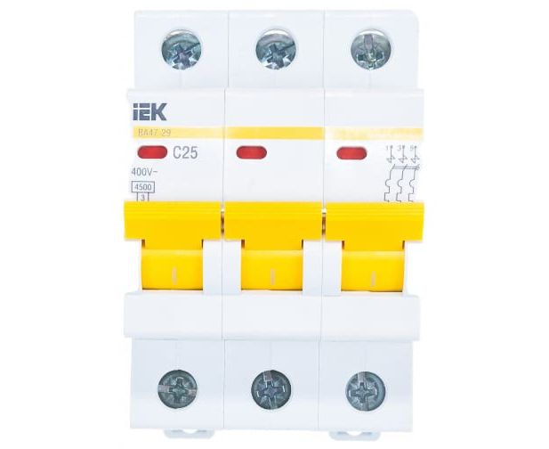 Преимущества IEK ВА47-29 3п, 25А, C, 4.5кА MVA20-3-025-C