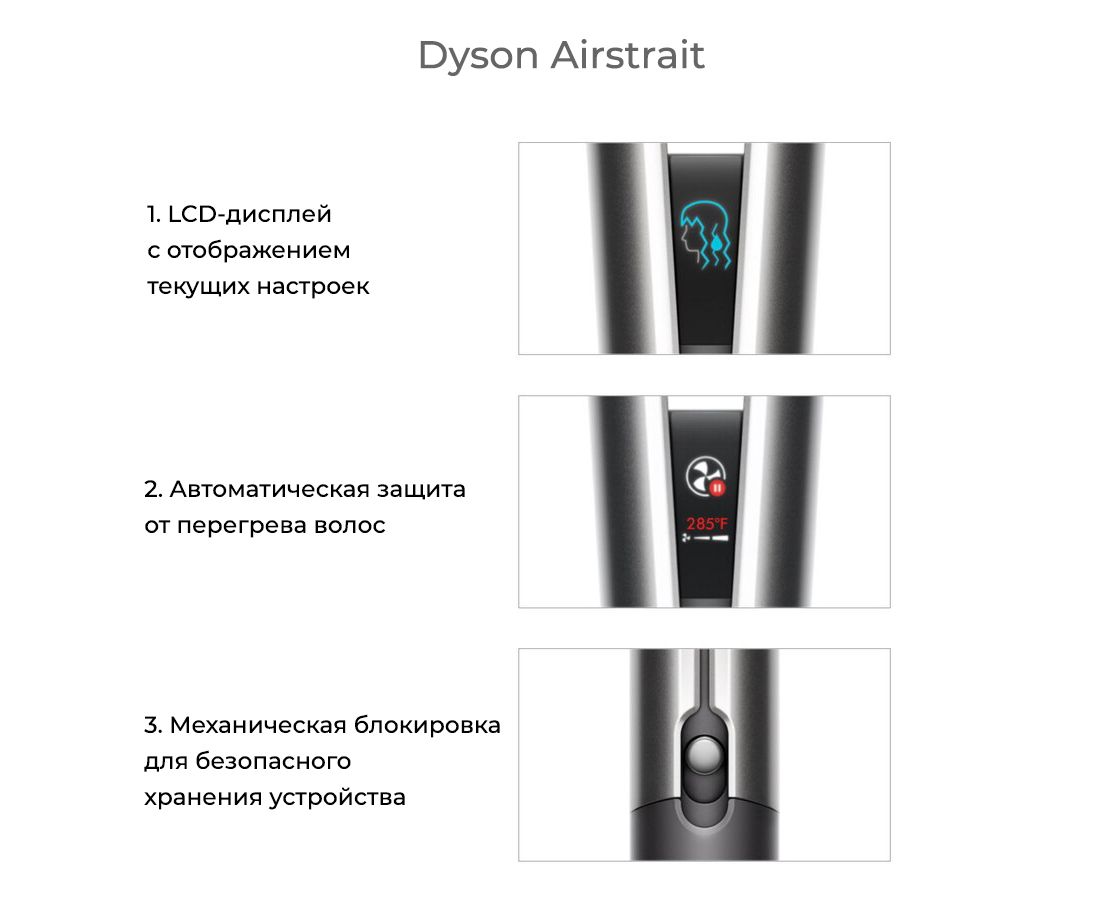 Технология выпрямителей Dyson имеет гибкие пластины, защищающие от повреждения волос.