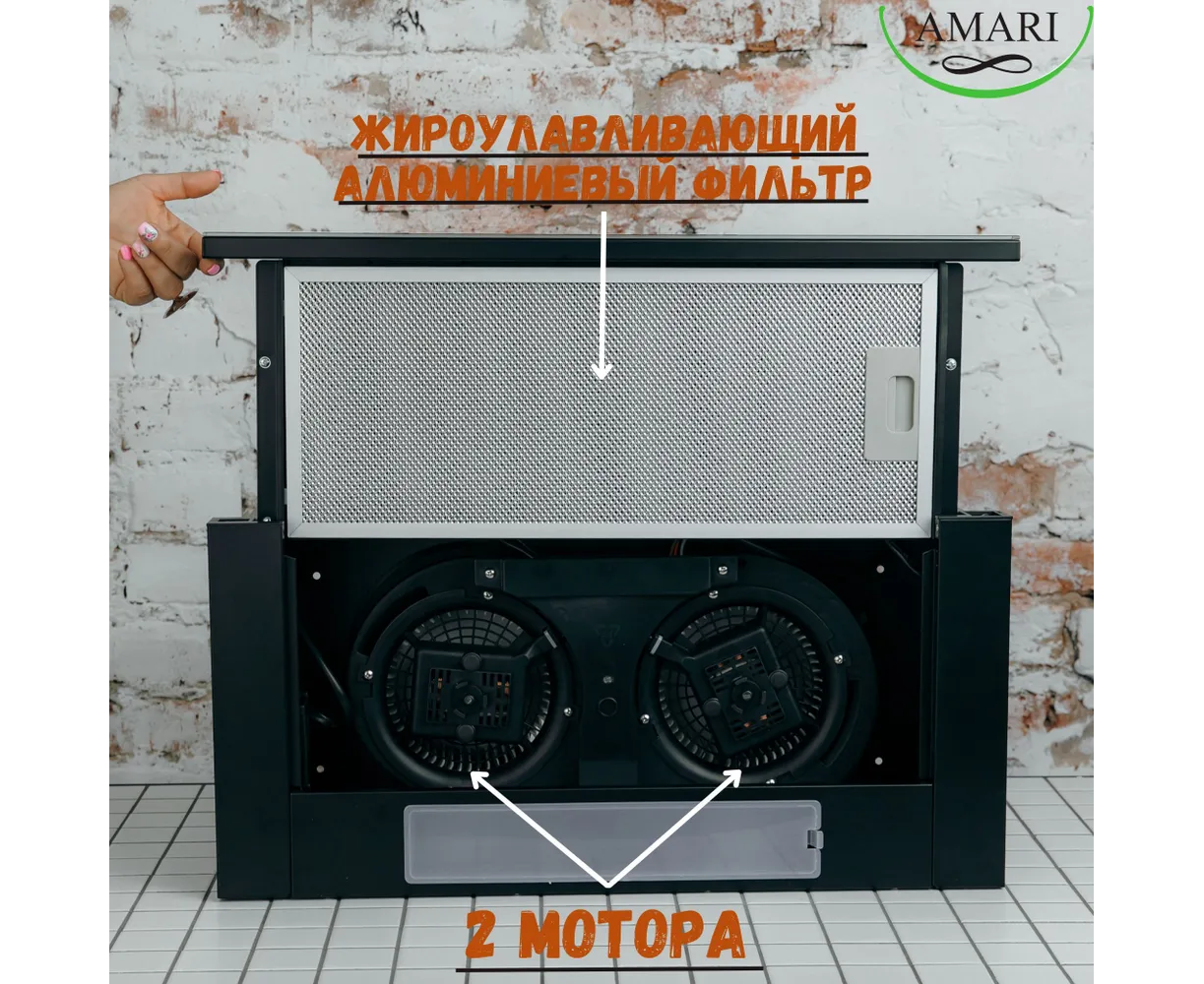 Вытяжка Amari Slide 50 black/glass