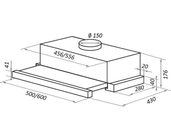 Ширина вытяжки: 600 мм