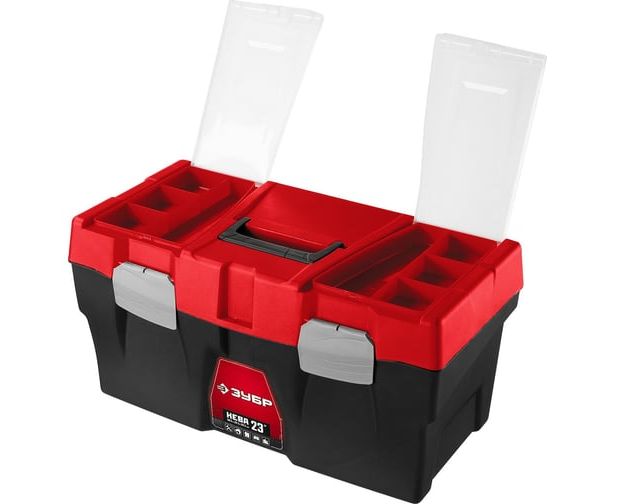 Пластиковый ящик для инструмента ЗУБР "НЕВА-23" 38323-23 удобен для хранения небольших предметов. Встроенная съемная полка значительно упрощает работу специалиста.