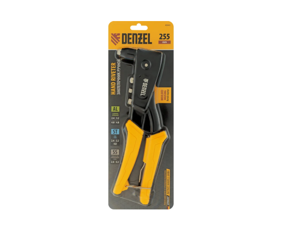 Заклёпочник Denzel 40441 ручной, 255 мм, литой, усиленный, заклепки 2,4-3,2-4,0-4,8 мм