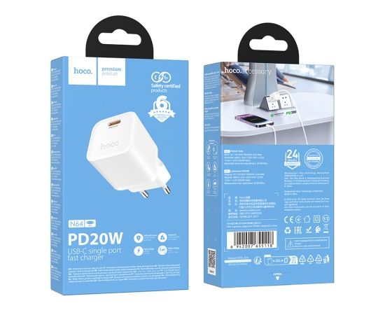 Зарядное устройство HOCO N64 Ingenious single port PD20W charger (EU) White