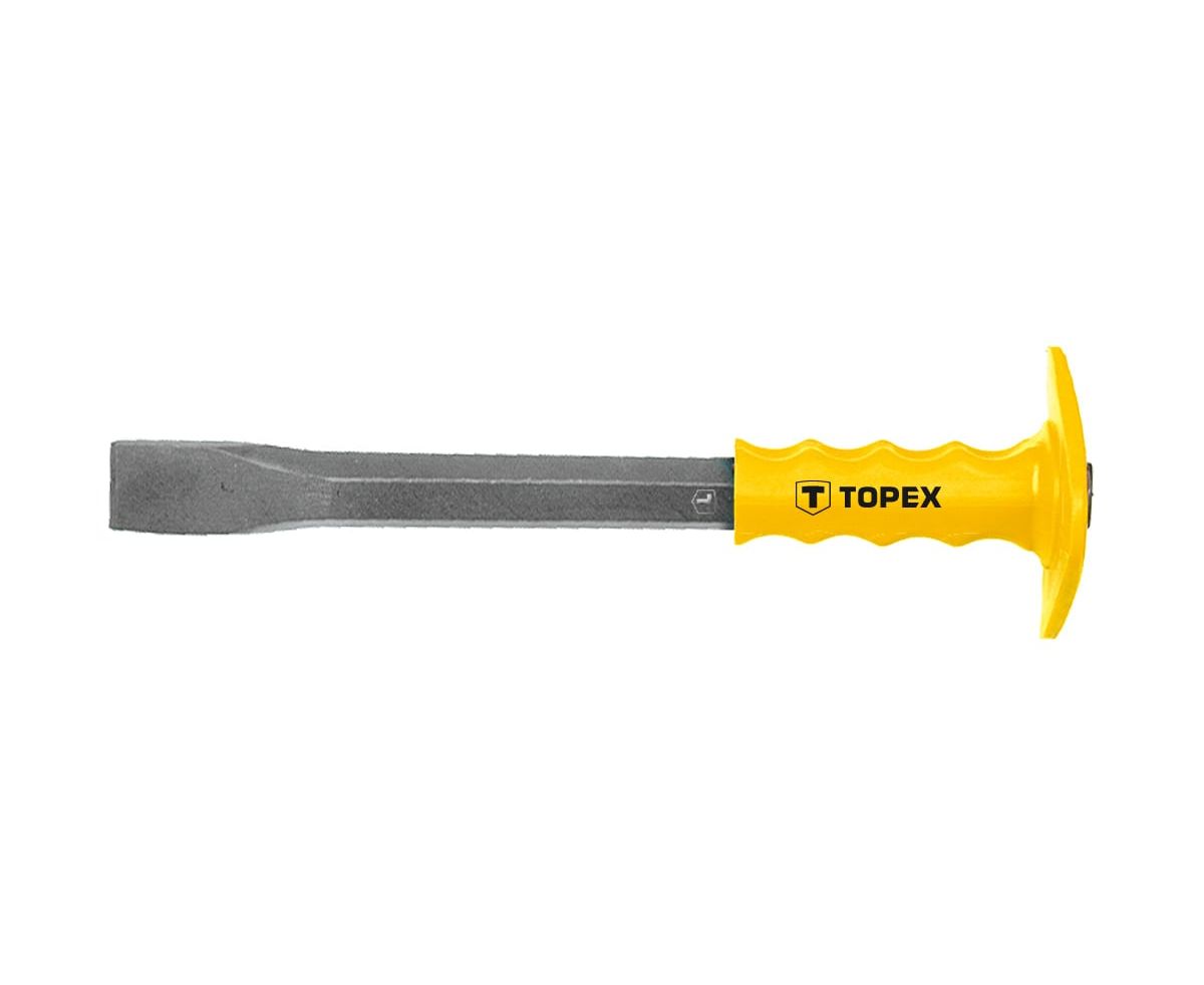 Зубило TOPEX 03A139 с пластмассовым фартуком для защиты руки, легированная сталь, шестигранное сечение